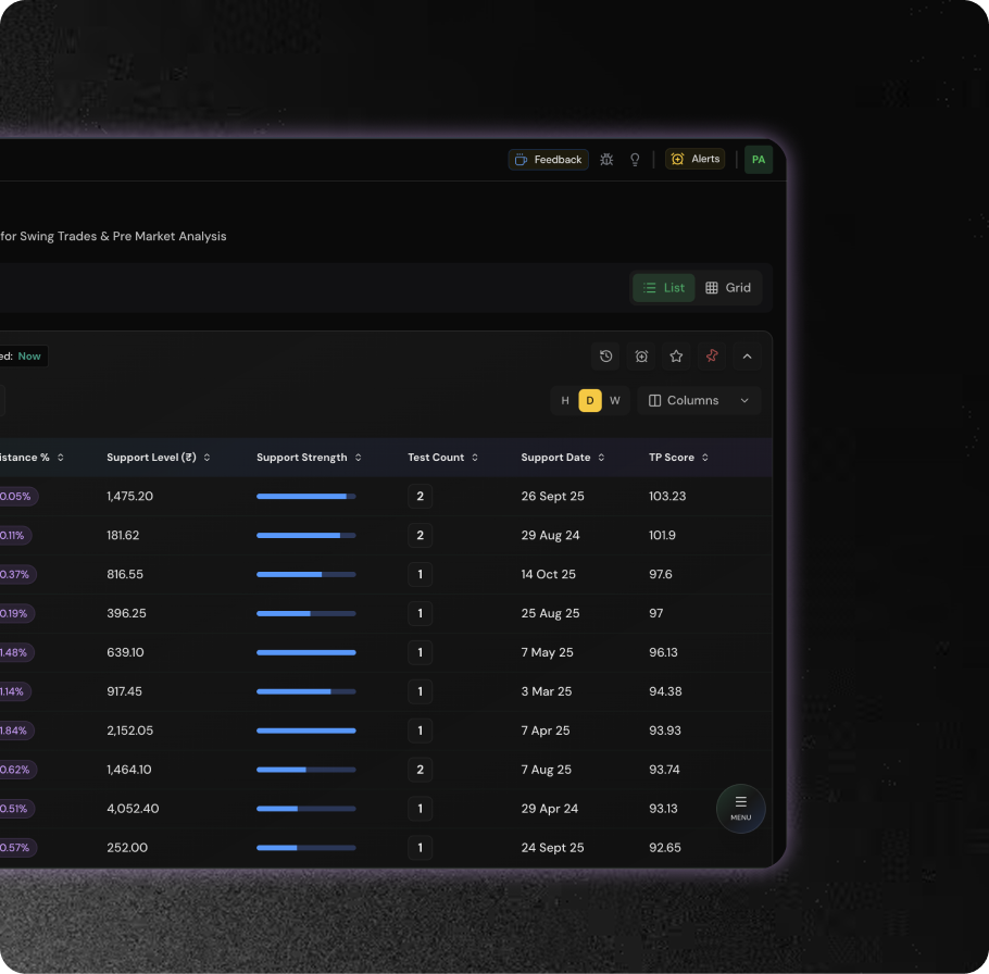 Get instantly actionable alerts on market movements, breakouts, and setups straight to your dashboard or Telegram.